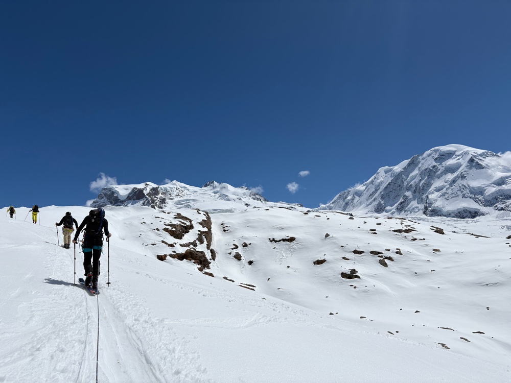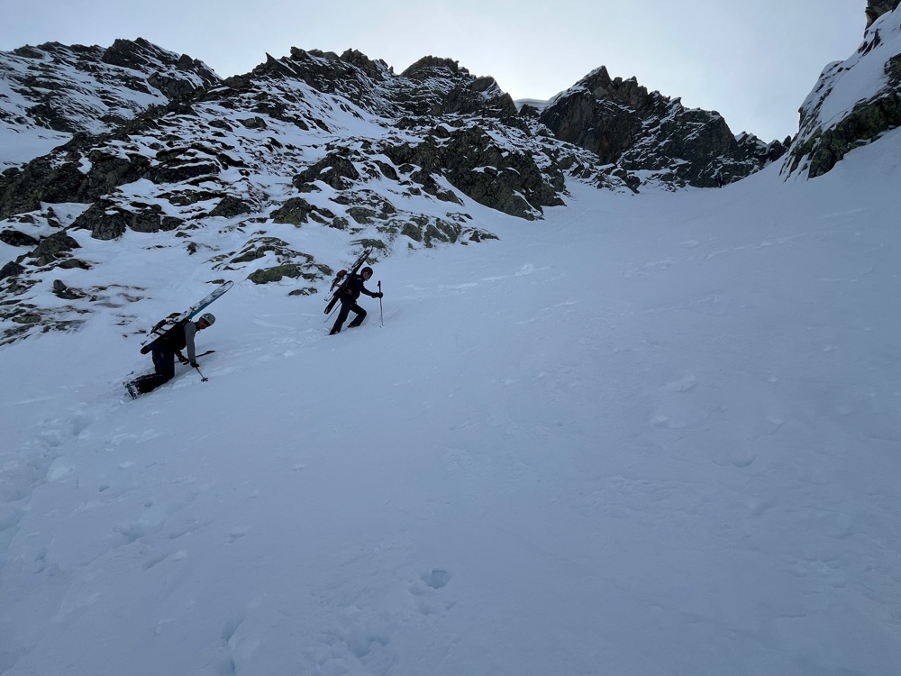 6 avril. Une boucle au départ de chamonix. Il y a du monde !! Col du Chardonnet. Avec Gauthier, le pote de Marius presque Suisse .